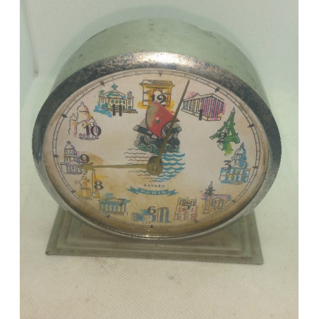 Rare réveil mécanique Bayard animé Paris de la série des villes et provinces des années 50